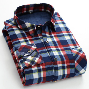 Autumn and Winter Fleece Customized Flannel Warm Thick Casual Shirts Men Long Sleeve Plaid Shirts